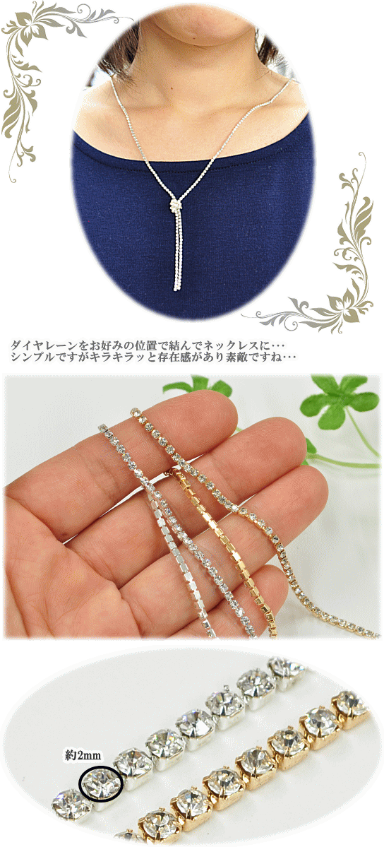 ダイヤレーン ガラス 2mm 約90cm 全2色 《 ピアス ネックレス ウェディング用 ドレス衣装 デコパーツ デコ パーツ スマホ デコパーツ スマホデコ ウェディング ラインストーン ガラス アクセサリー 》